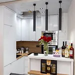 In einigen Zimmern der Ferienwohnung Nelalux gibt zudem die voll ausgestattete Küchenzeile, die mit einem Toaster und einem Herd ausgestattet ist.